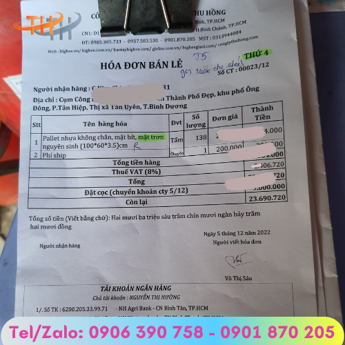 Để đảm bảo mua đúng pallet nhựa nguyên sinh chất lượng giá rẻ, quý khách hàng hãy liên hệ ngay vào hotline 0901 870 205 của công ty Thu Hồng để được tư vấn và báo giá pallet nhựa mặt bít không chân tốt nhất nhé!