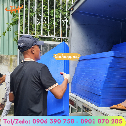 Thu Hồng lên hàng tấm pallet nhựa để giao cho khách sỉ