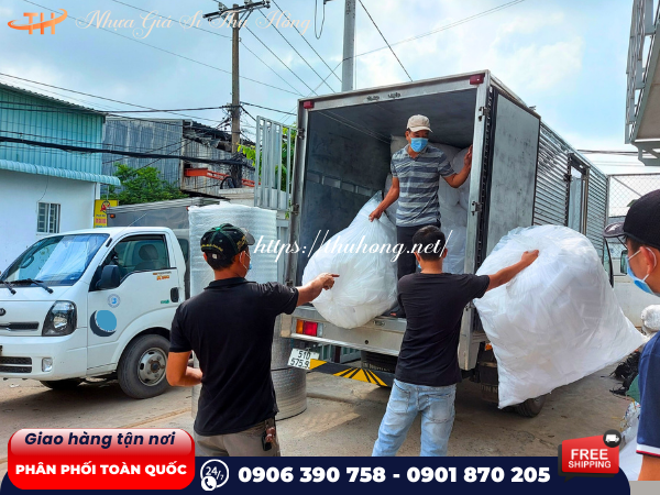 - Đặt hàng và giao hàng nhanh chóng: đơn hàng chốt xong là được đội ngũ sale, kho và giao hàng của nhựa giá sỉ Thu Hồng kết hợp sắp xếp xe tải giao nhanh chóng nhất, tận nơi, tận nhà cho khách.