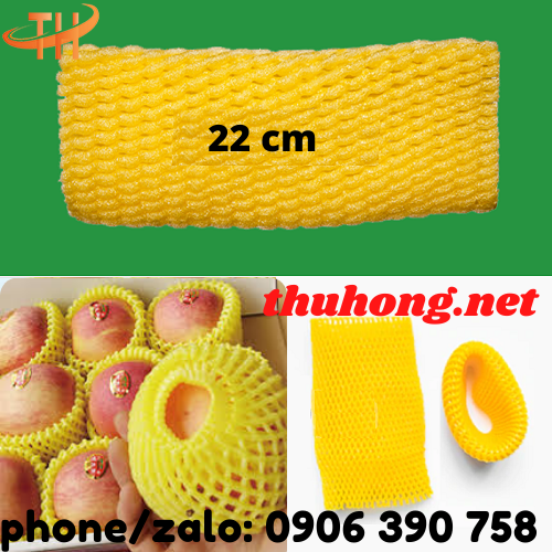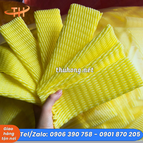 Lưới xốp bọc trái cây màu vàng dài 22cm là xốp được sản xuất theo nhựa nguyên sinh, mềm, xốp và có nhiều khoảng không thoáng khí.