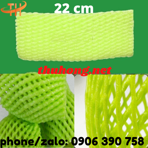 Lưới xốp bọc trái cây màu xanh, có kích thước dài 22cm là xốp được sản xuất theo nhựa nguyên sinh, mềm, xốp và có nhiều khoảng không thoáng khí.