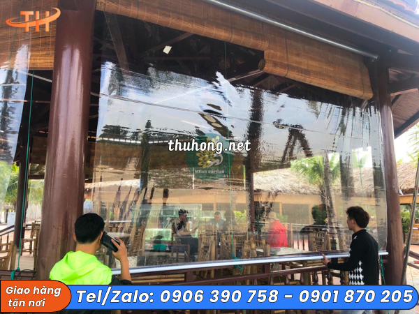 - Ưu điểm bạt nhựa trong: thiết kế dạng cuộn, có thể kéo căng cố định hoặc kéo cuốn linh hoạt, đảm bảo mục đích chắn gió, bụi và che mưa hiệu quả, tạo không gian sống thoáng đãng, tươi sáng, sang trọng.