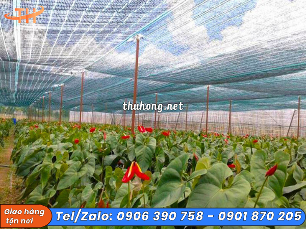 Ứng dụng lưới nhựa che nắng vườn hồng môn