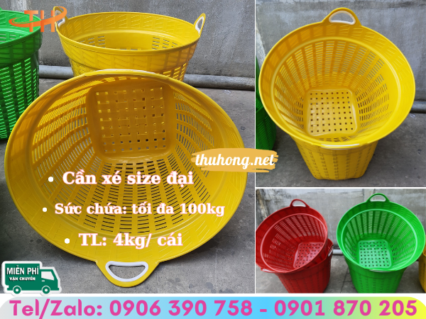 Cần xé nhựa (sọt nhựa, rổ nhựa, sọt đựng nông sản, giỏ nhựa đựng trái cây…) có thành phần sản xuất từ nhựa PE/HDPE cao cấp, chịu được lực cơ học tốt, bền đẹp và phù hợp với nhiều nhu cầu sử dụng trong đời sống như đựng xoài, sầu riêng, mít, khoai mì, đậu phộng vào các vụ mùa thu hoạch, xuất khẩu hay đựng hàng hóa trong kho xưởng…