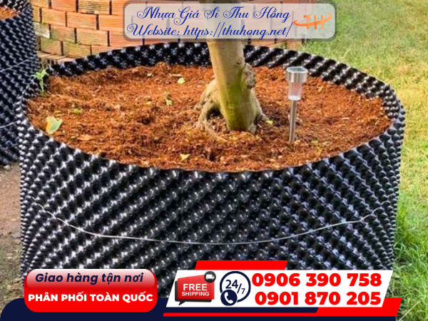 - Thường được làm từ nhựa PET hoặc PVC bền, tái sử dụng nhiều lần, thích hợp cho cây trồng dài ngày.