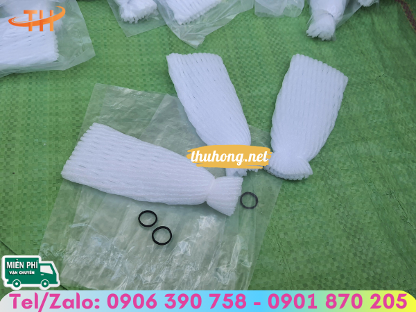 Xốp bọc trái cây có lồng sẵn túi nilon và dây thun đen